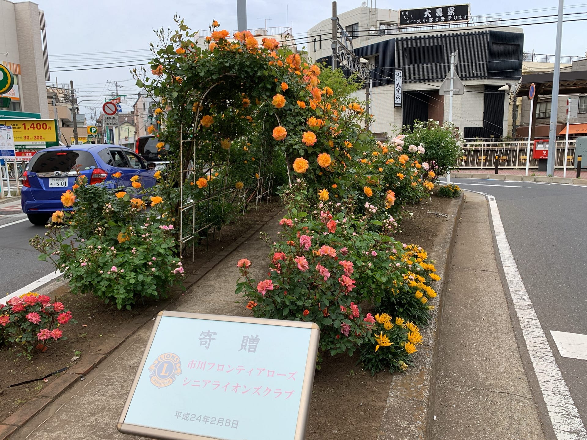 京成八幡駅前のバラが綺麗に咲いています。このときはまだ行先は決めていませんでした。