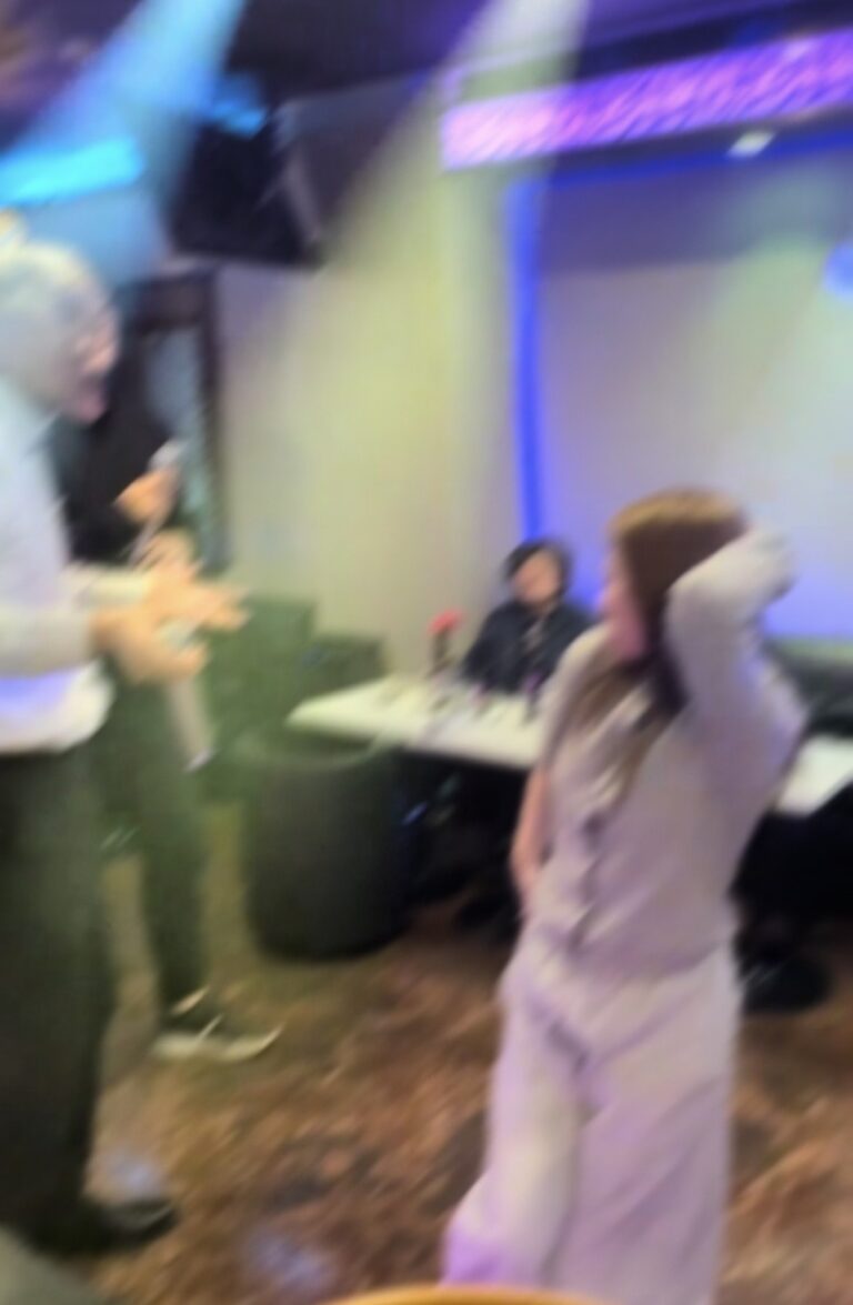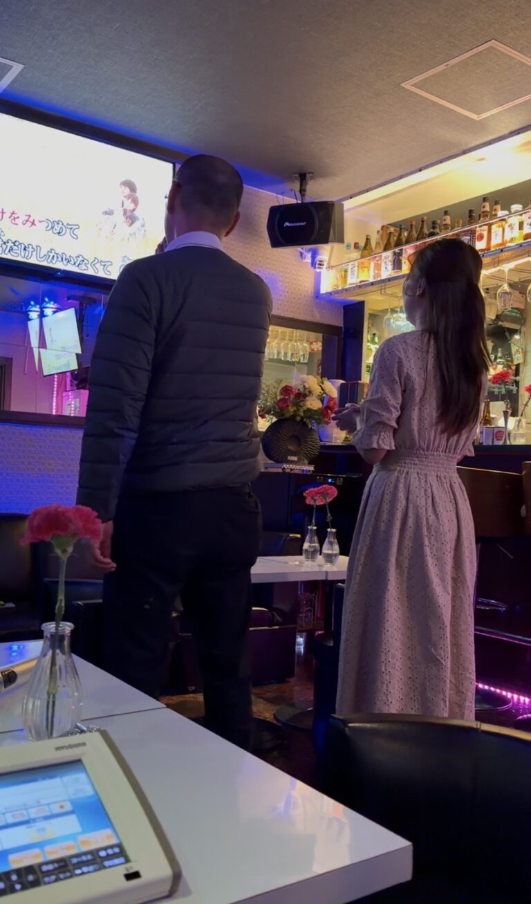 皆で歌うと楽しい 一人より二人別々のお客様でも今夜は酔って楽しもう!その気持ちは一緒でしたね にぎやかな木曜の夜でした 笑いが笑いを呼ぶ セクシーポーズなのかボディビルダーの決めポーズなのか? これがまたうけました 盛り上げ方がお上手見ているお客様も大笑い 応援されるともっと気持ちよく歌えますね♪