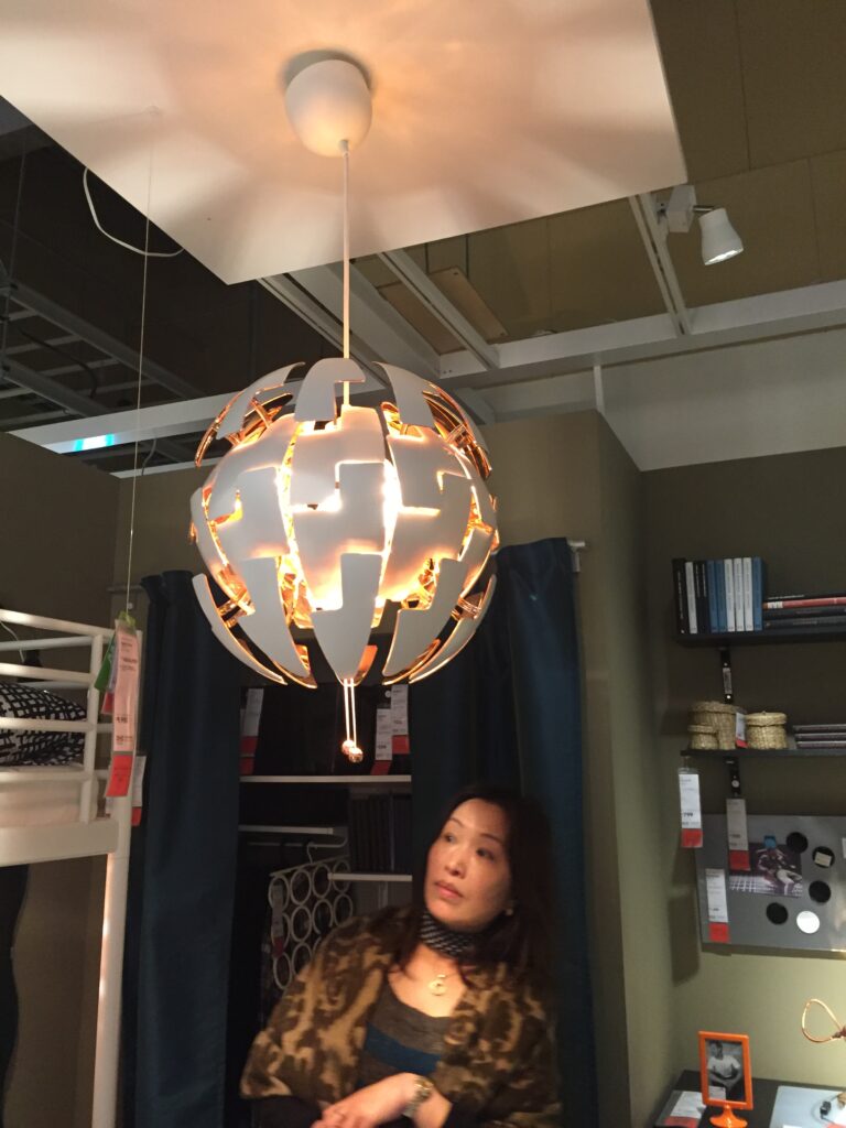照明に一目惚れ 今から10年前幕張の家具屋さんに照明を探しにいきました いろいろあるけどゴールドの丸い照明を一瞬見て、これ買う!衝動買いというより、一目惚れ買いをした照明です お店を改装するから、そんなこともあって買ったんですよねー 買ってきて、組み立てや取り付けに四苦八苦