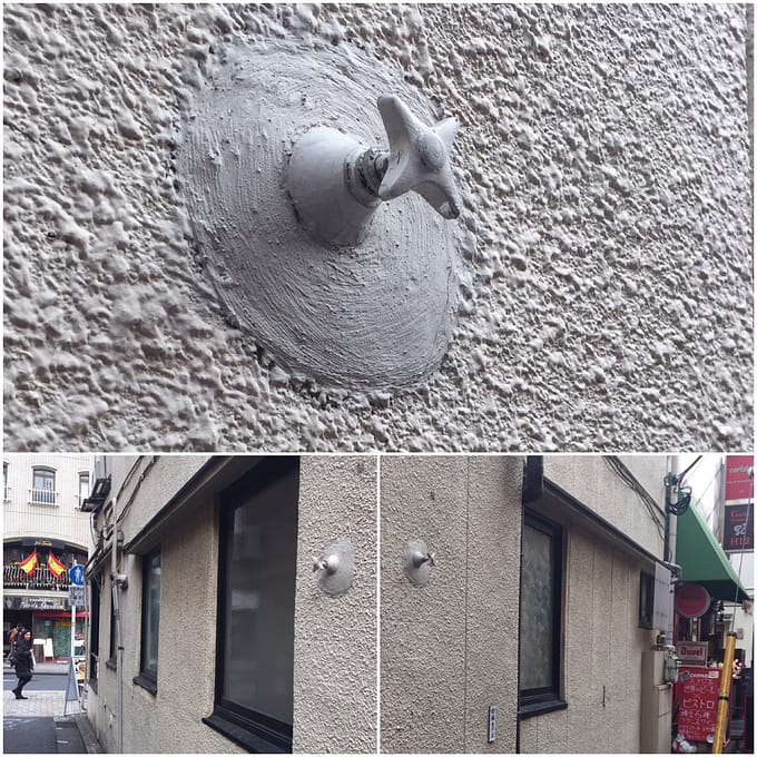 お家の壁に水道の蛇口のハンドル。蛇口の回すところはめずらしくありませんが、どっから水がでるの?それが問題だ~