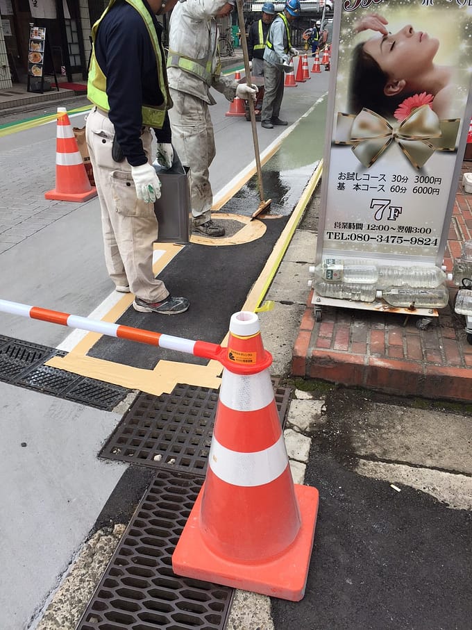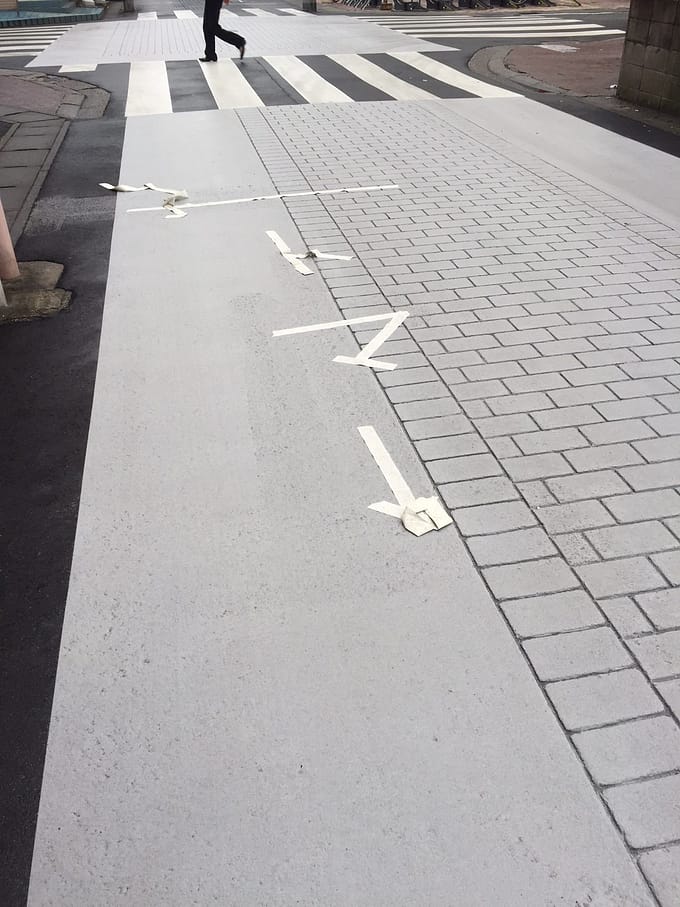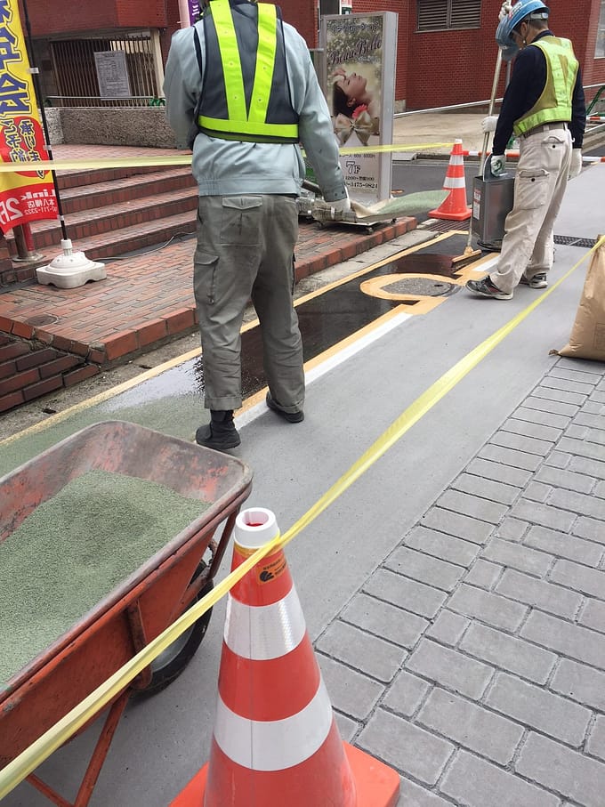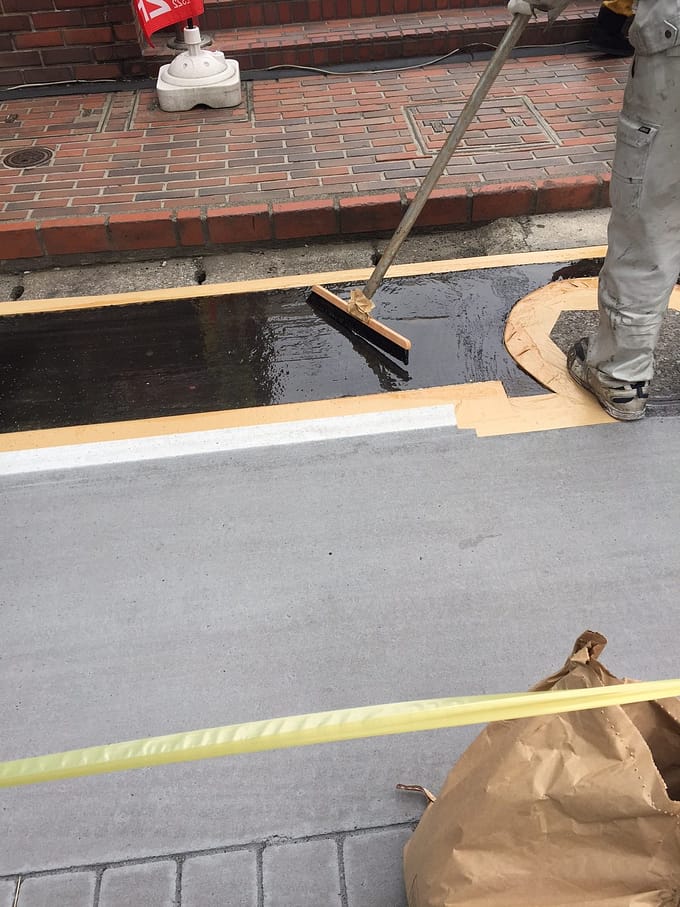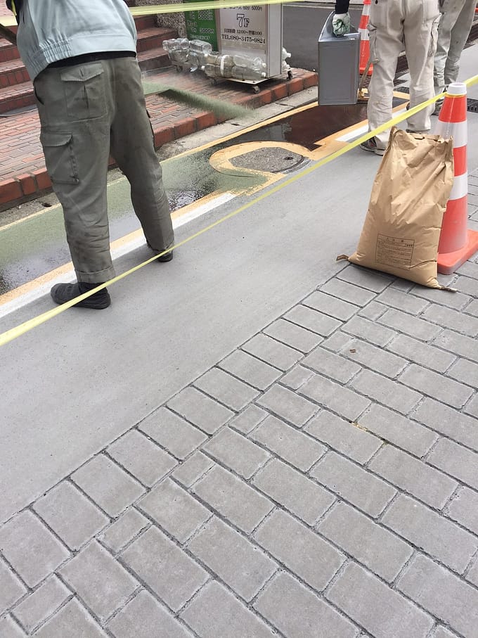 こんな風に歩道に接着剤を塗って…