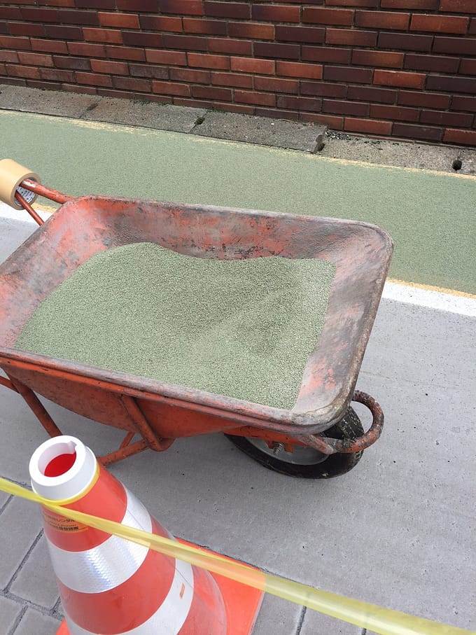 歩道の緑色は砂みたいです。見ればわかりますね。あはは~