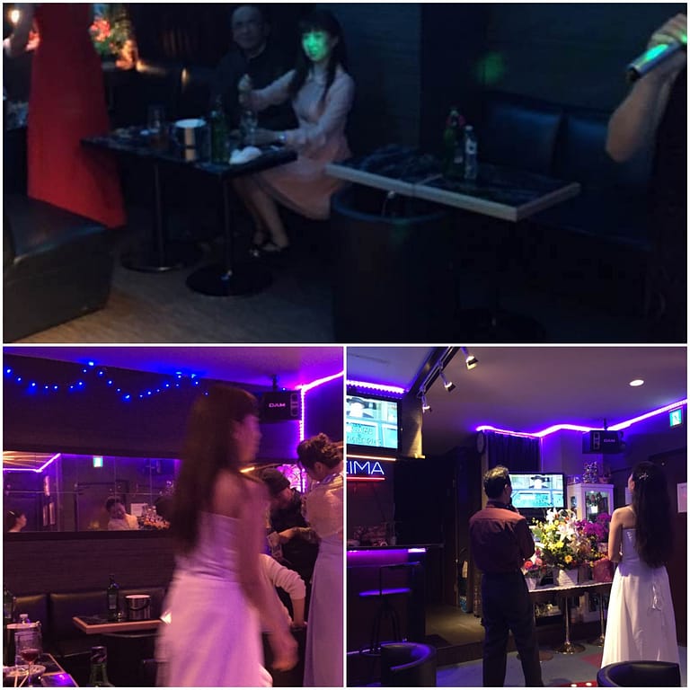 短いドレスにロングドレス、どちらもあわいピンク色を用意して入店