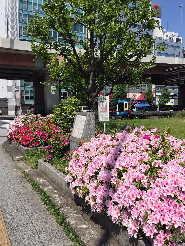 あっ、つつじがきれい。そう思って立ち止まってみました。公園にしては、立ち入ってはいけない雰囲気。なんの広場なんだろう?