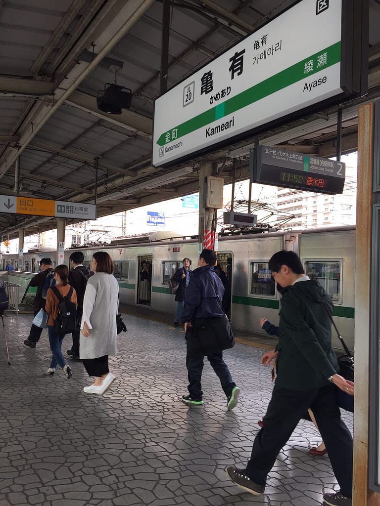 常磐線亀有駅北口、お出迎えしてくれるのは、両津 勘吉(りょうつ かんきち)