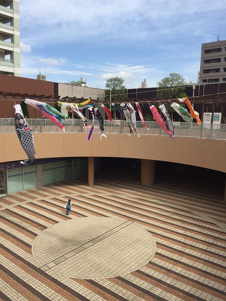 市川駅前で泳いでるこいのぼり