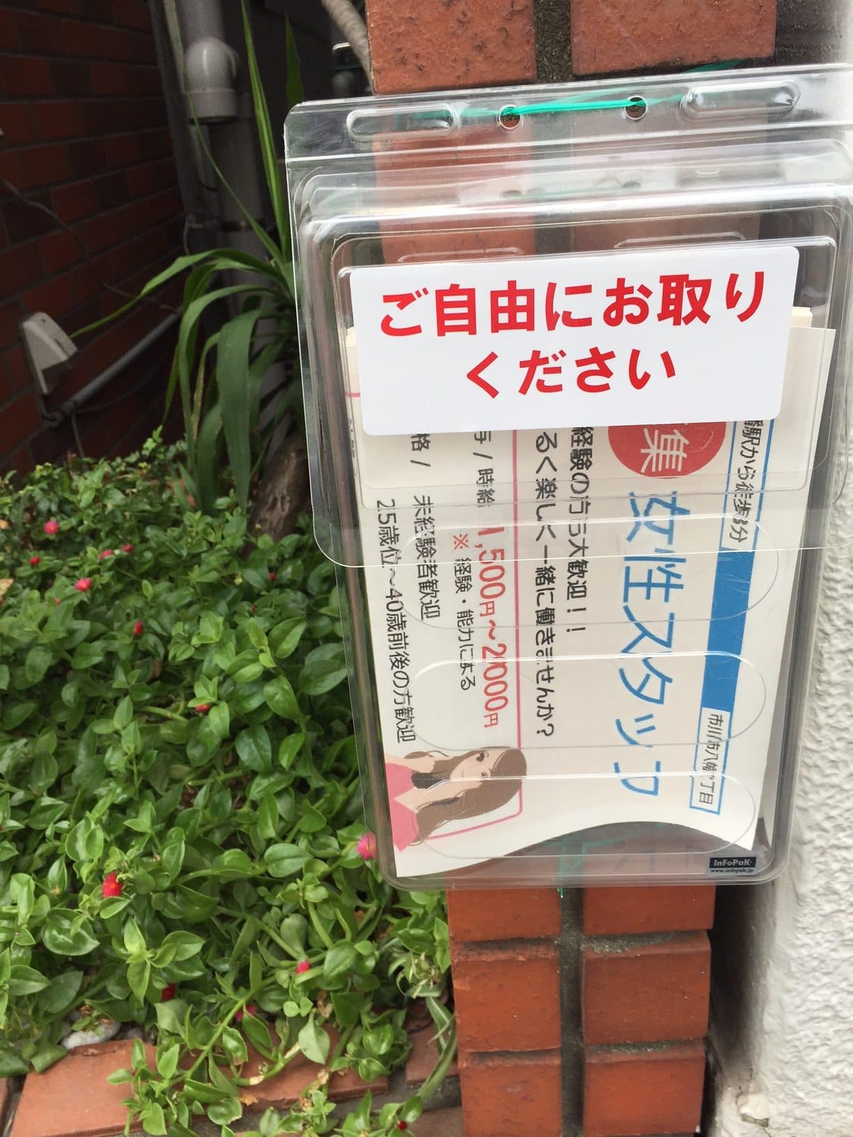 手作りの女性スタッフ募集のチラシを、お店の前に置いてみました。