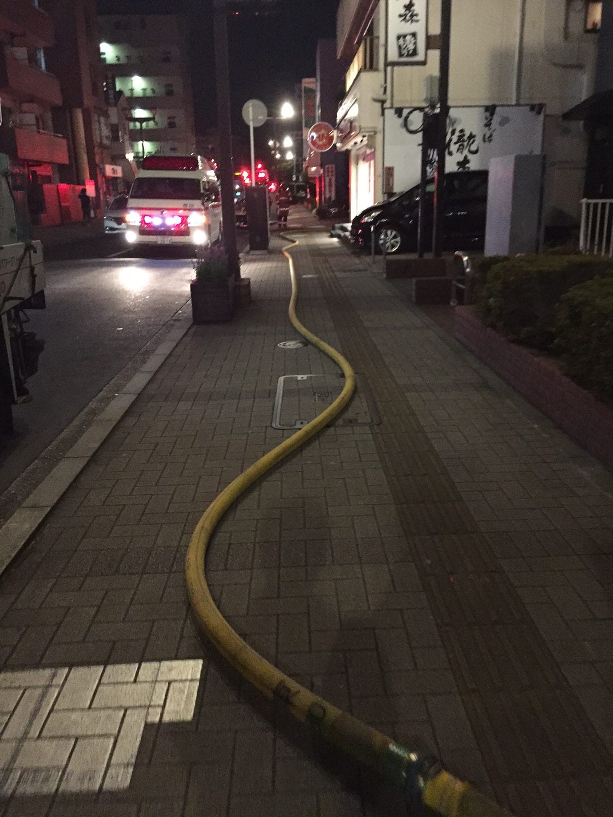 ゴムの焼けたような臭いの原因は火事でした。北口にある私のお店まで風で流れてきたんですね。