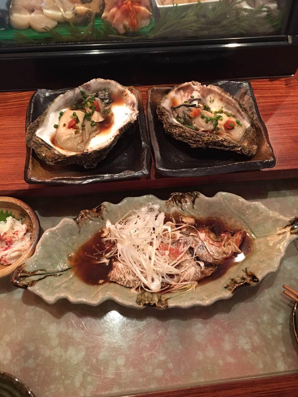 おすすめの岩牡蠣と鯛の煮つけをいただきました。
