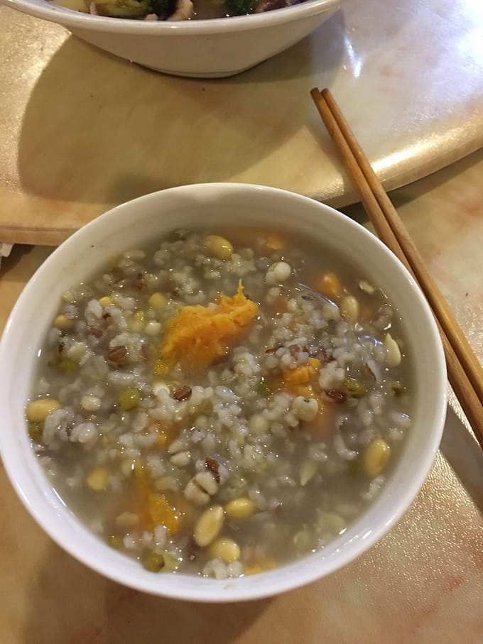 お米から作るお粥は美味しいです。鶏ガラだしで薄味、体に優しいお粥。わたしは朝、夜、にお粥を食べる習慣があります。