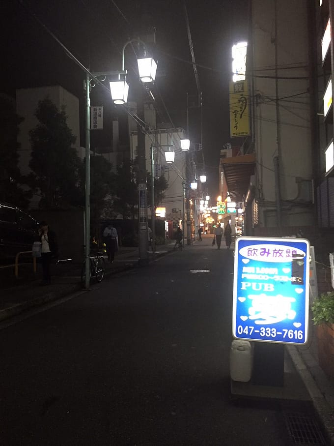 本八幡駅北口を降りて、数分の場所にPUB夢はあります。