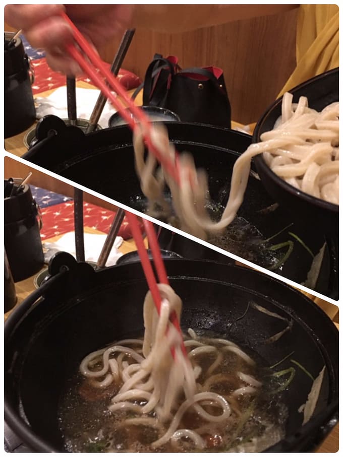 仕上げは、うどんを入れていただきます。鶏ガラのだしが麺にからんで、つるつる食べられます。とっても美味しいかったよ。