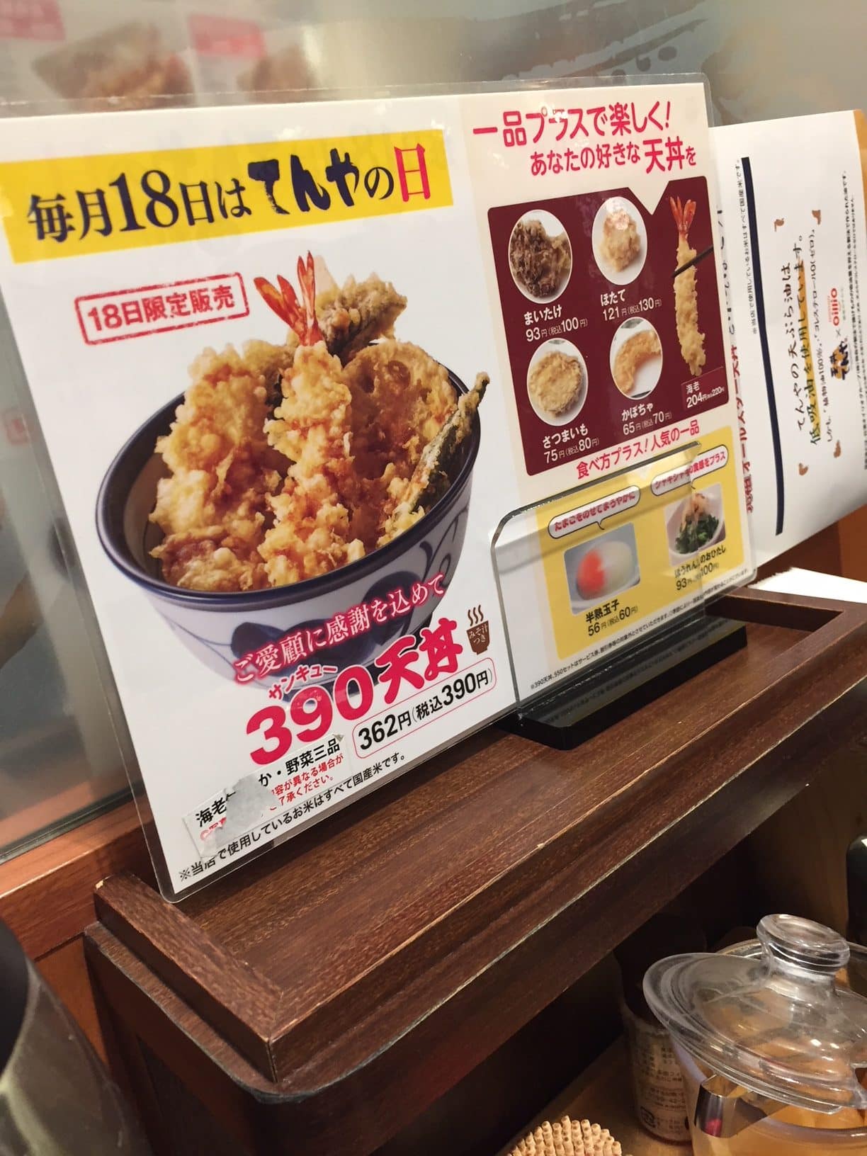 毎月18日は天丼が390円