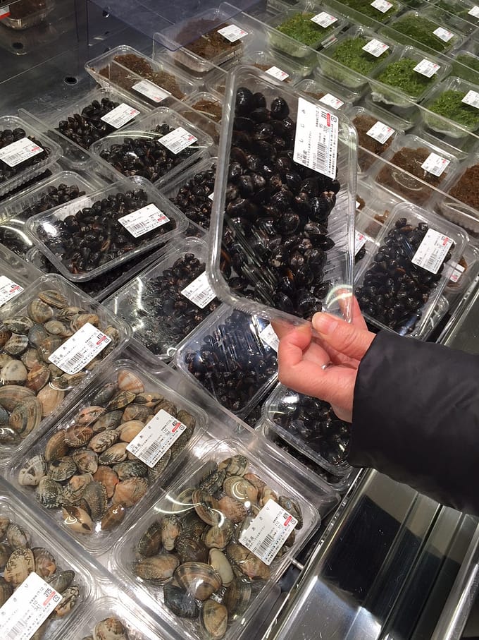 あさりも大きくて美味しそう。迷ったけど、しじみを買いました。