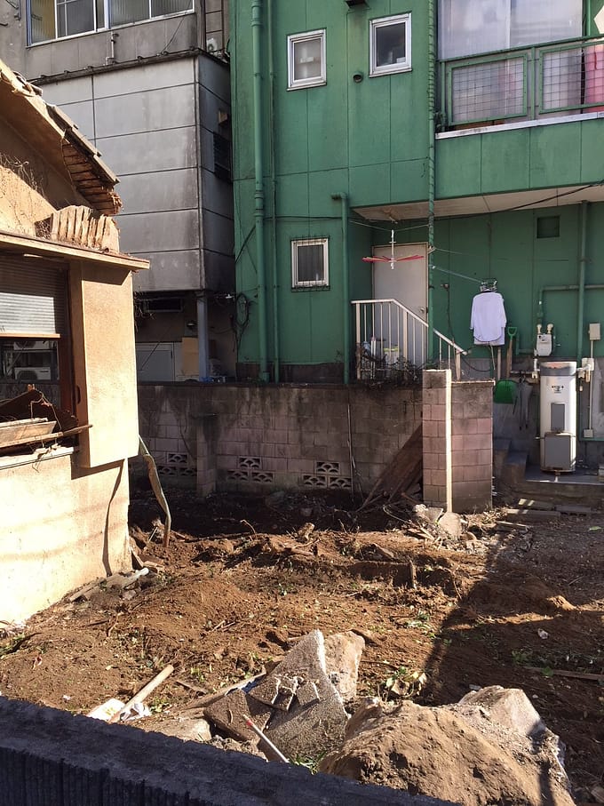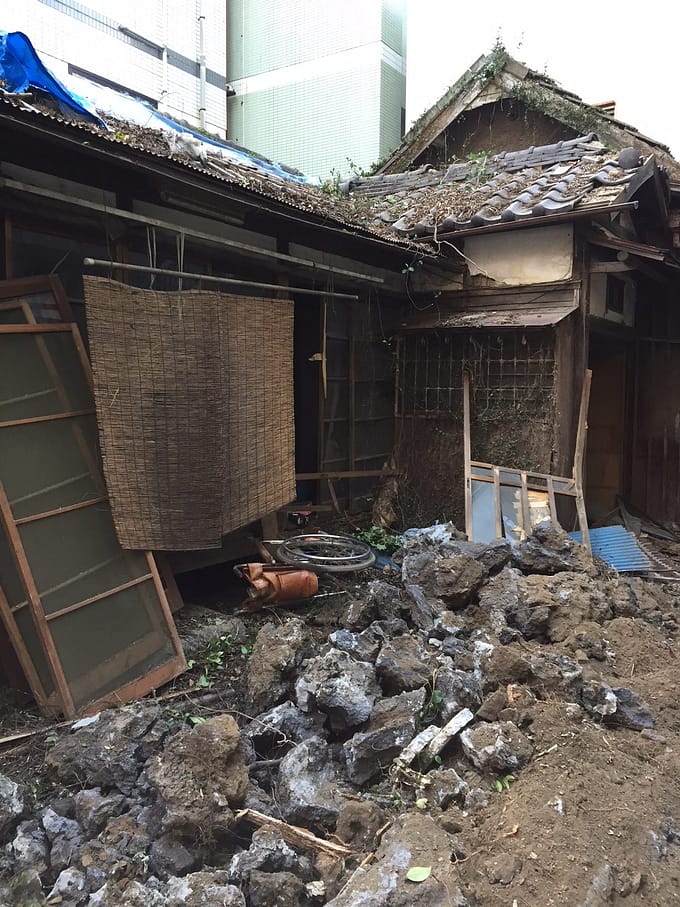 はじめて通ってみました。路地の先には誰も住んでいない、古いお家が壊れてありました。ちょっと失礼します。