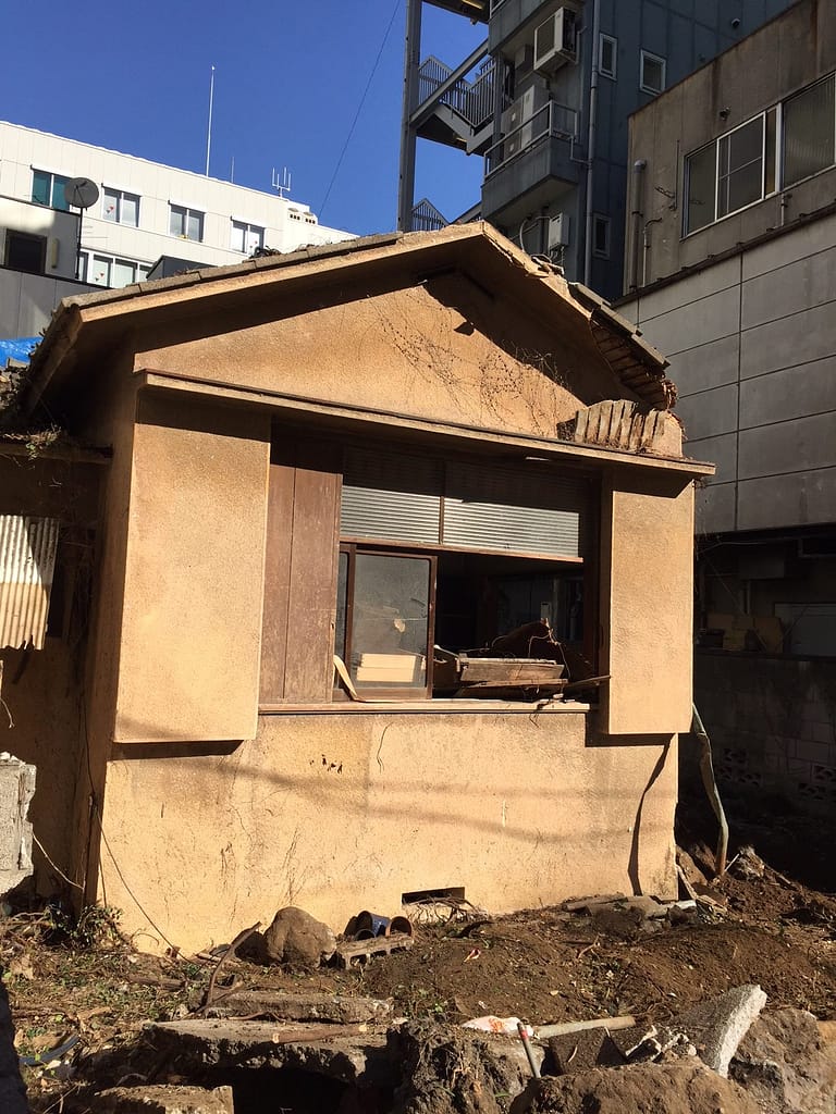 ビルにはさまれた壊れたお家