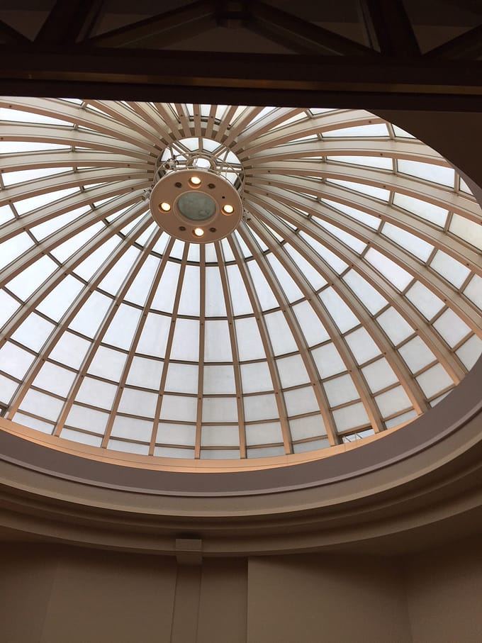新浦安駅とつながったような入口で、そのまま2階からホテルに入ります。ドーム型の天井と、すぐ下に広々した豪華なラウンジが見えます。