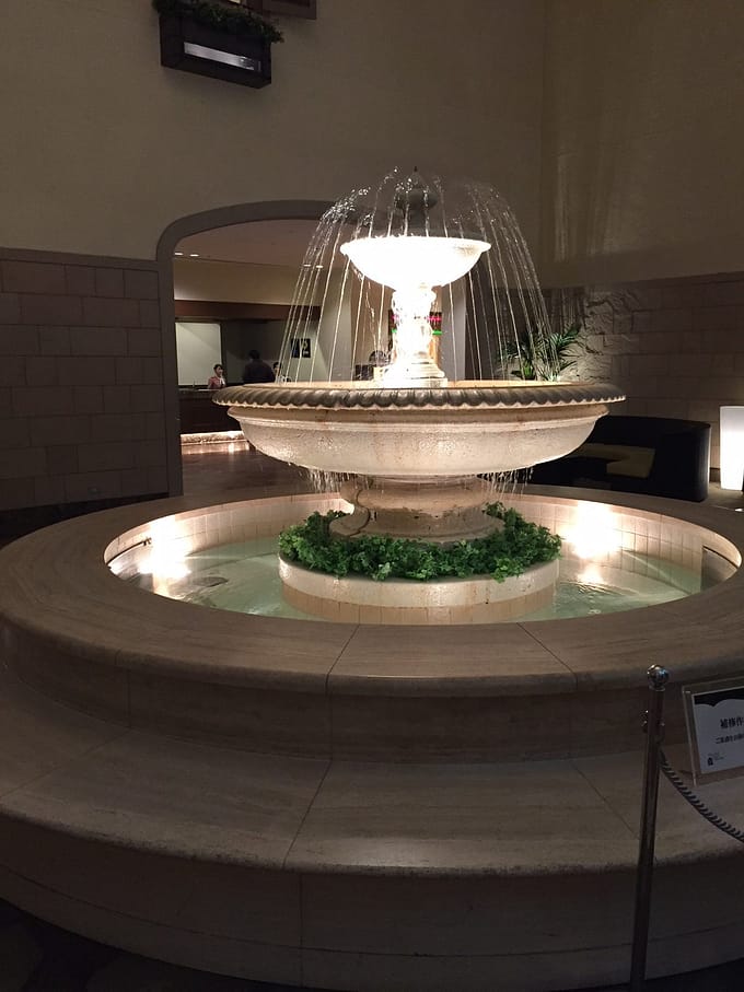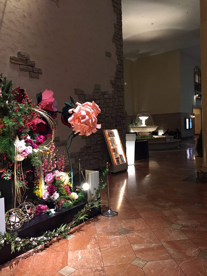 ホテルに入ってすぐ、大きなお花がとってもきれいでした。向こうには噴水があっていい感じです。