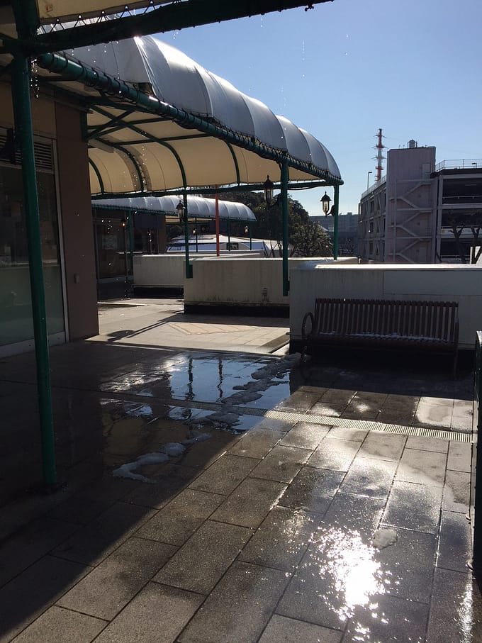 てくてく歩いて、ニッケコルトンプラザに向かいました。この道をまっすぐ行くとニッケコルトンプラザです。