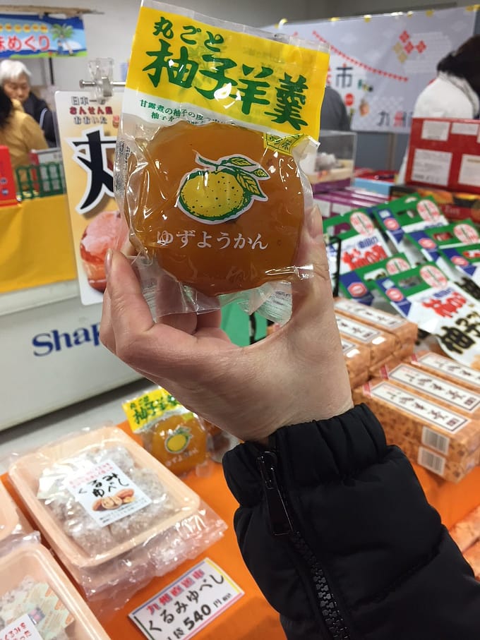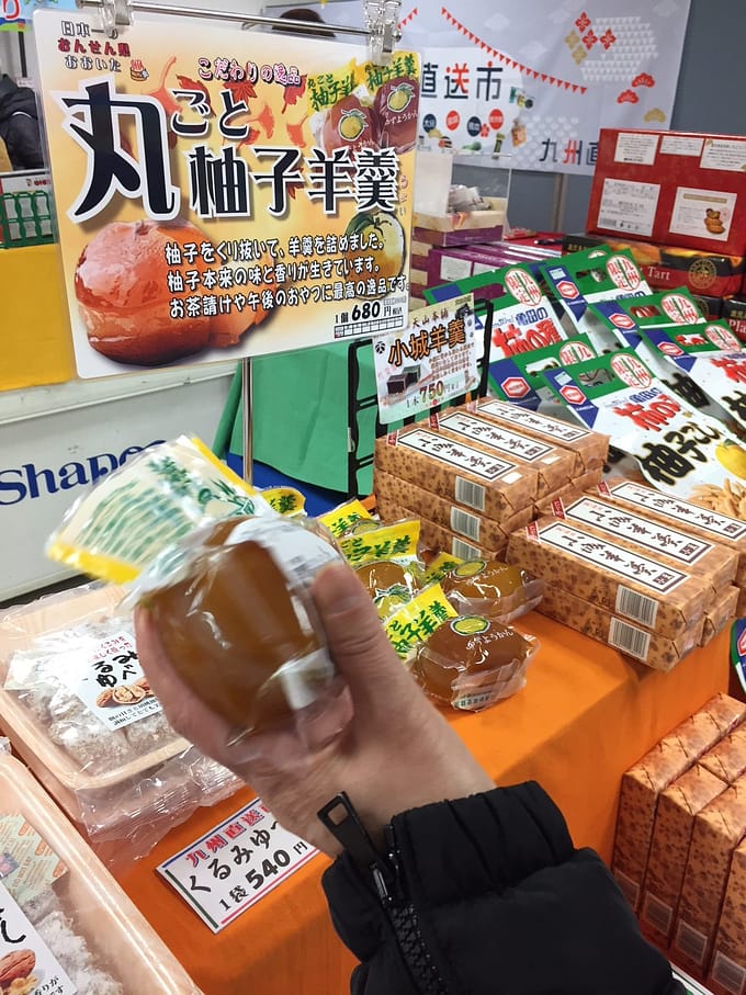 丸ごと柚子ようかんを手に取り、買うかどうしようか迷いました。