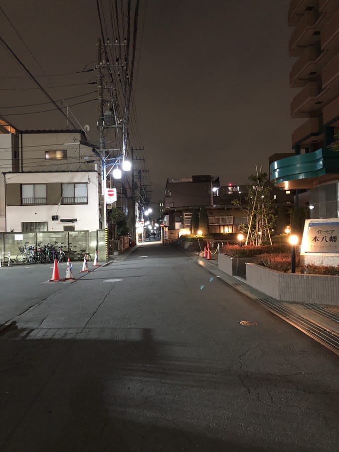 ドン・キホーテ本八幡店の裏で、この道をまっすぐ行くと
