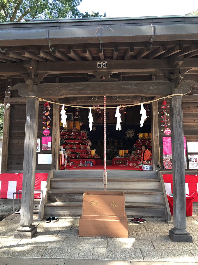 いくつかのお店では参道沿いから、お店の中のひな人形を見ることができました。街をあげてのひなまつりです。