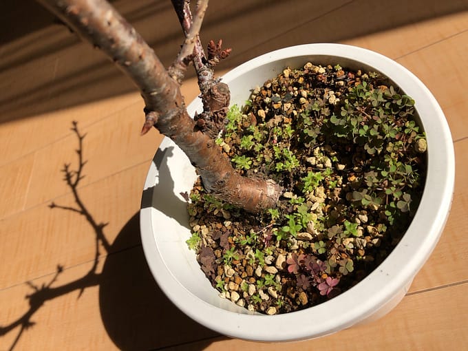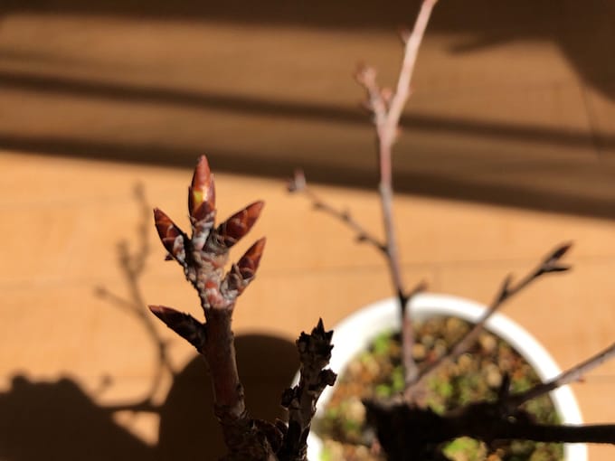 一年間お家で育てた桜の苗木。育てたといってもベランダに置いていただけですが、わかりますか?