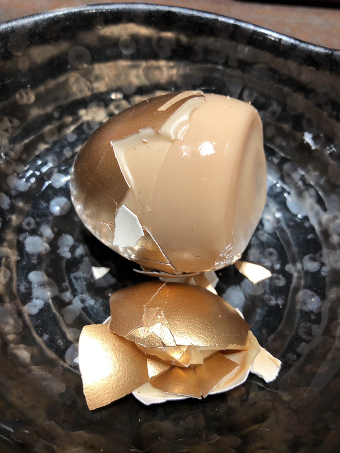 少し迷ったんですが、残り一個しかない金の卵の方を選びました。店員さんが言うには、銀の卵と金の卵、ほとんどのお客さまは金の卵を選ぶそうです。