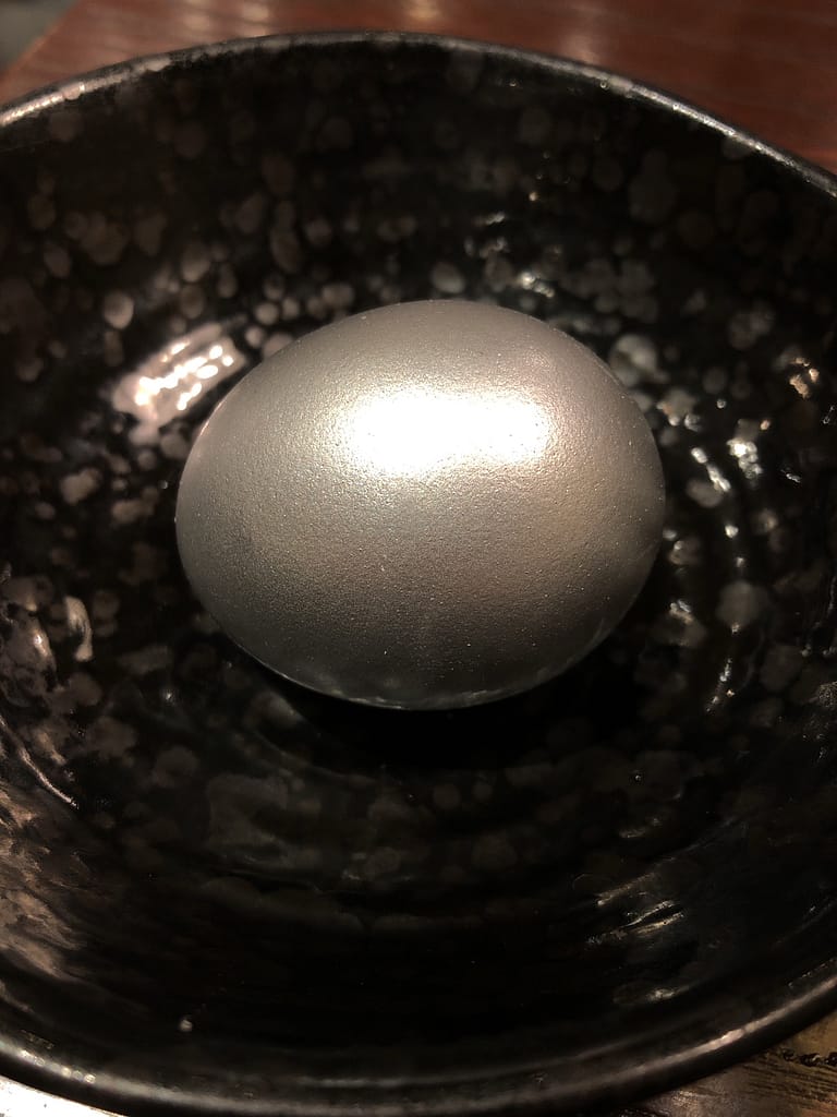 銀のからをむくと、煮卵のような色をした白身が見えてきました。金の卵と同じです。