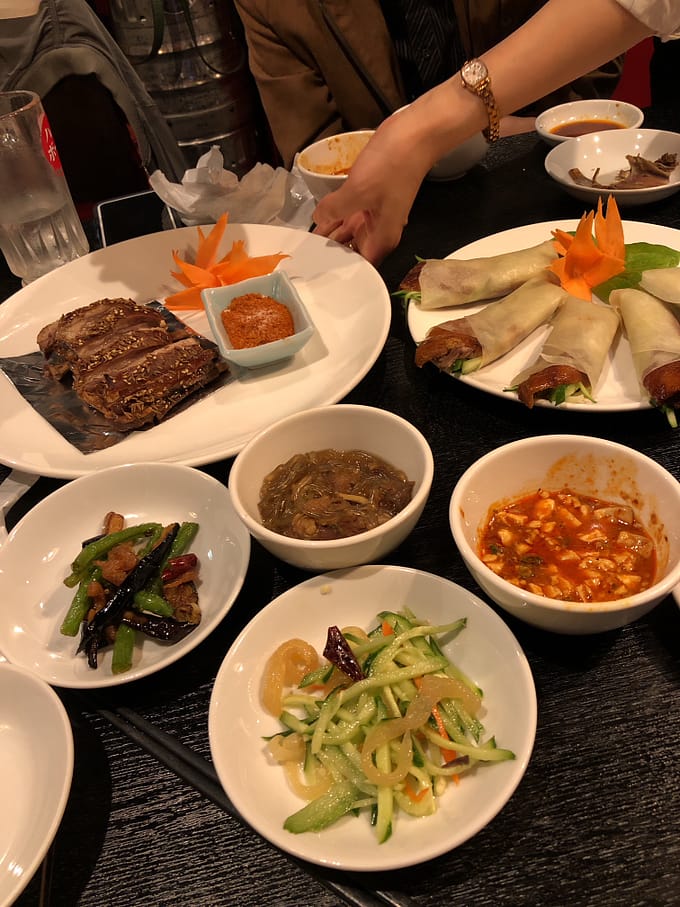 北京ダックの甘みそは、前もって皮の中に入ってるから、そのままパクッて食べやすかったです。