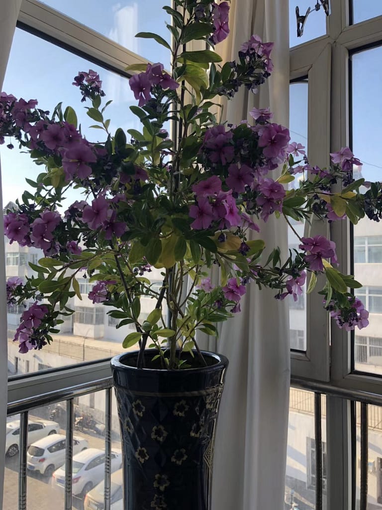 お父さんが手入れをしてきた植木に花が咲きました。生き生き力強く、満開のお花。オシロイバナに似ています。正式の名前はなんだろう?