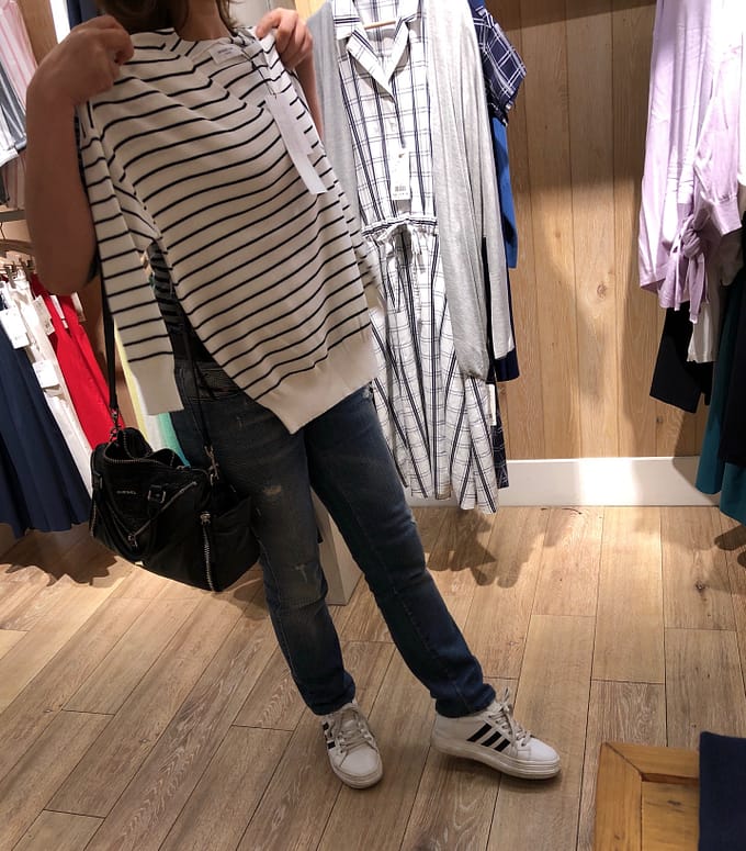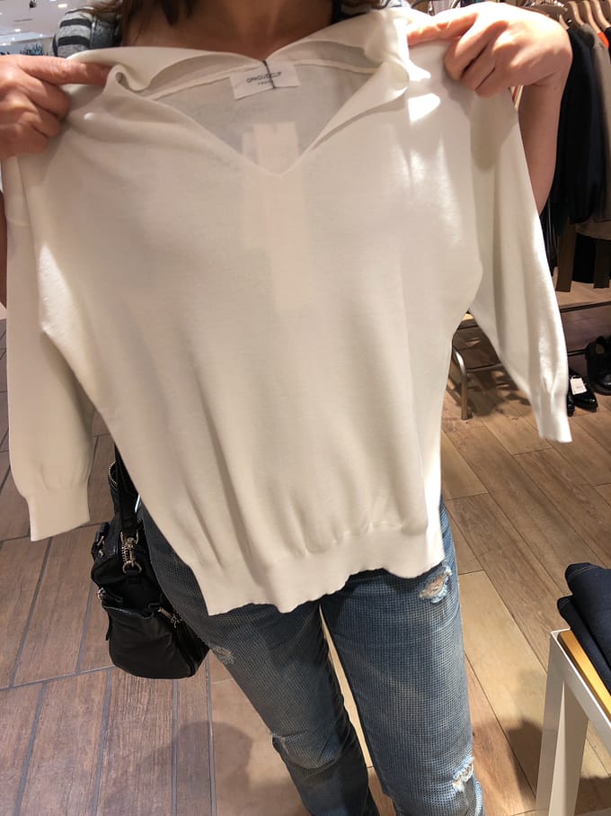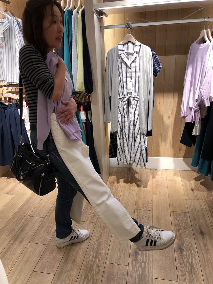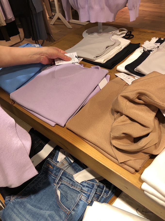 ラーメンも食べてお腹いっぱい。帰り際、店頭に並んでいるベージュの洋服が気になりました。薄紫も爽やかでいいなー