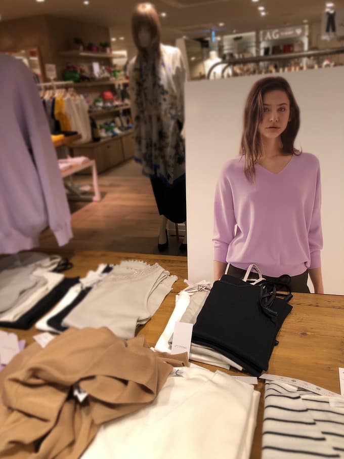 パネルのモデルさんの薄紫の感じがいいかなーって思って…。でも後ろのマネキン、ちょっと怖い感じで写っちゃったね。笑
