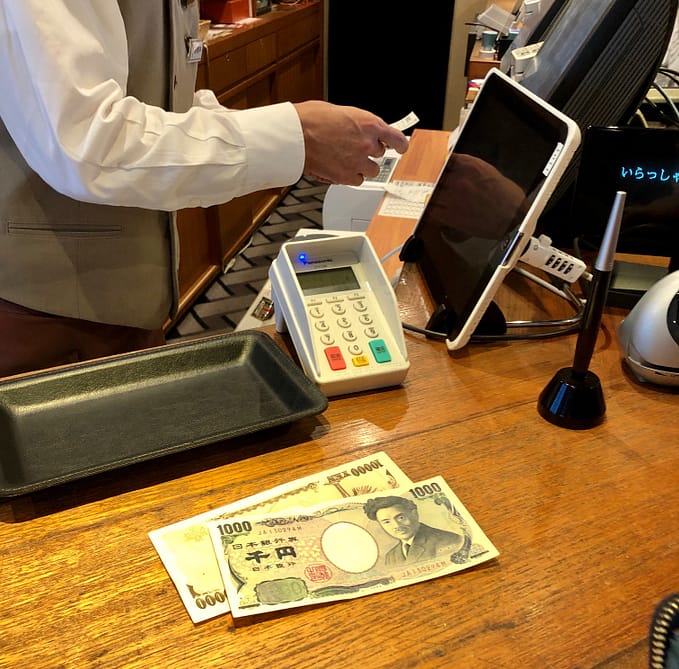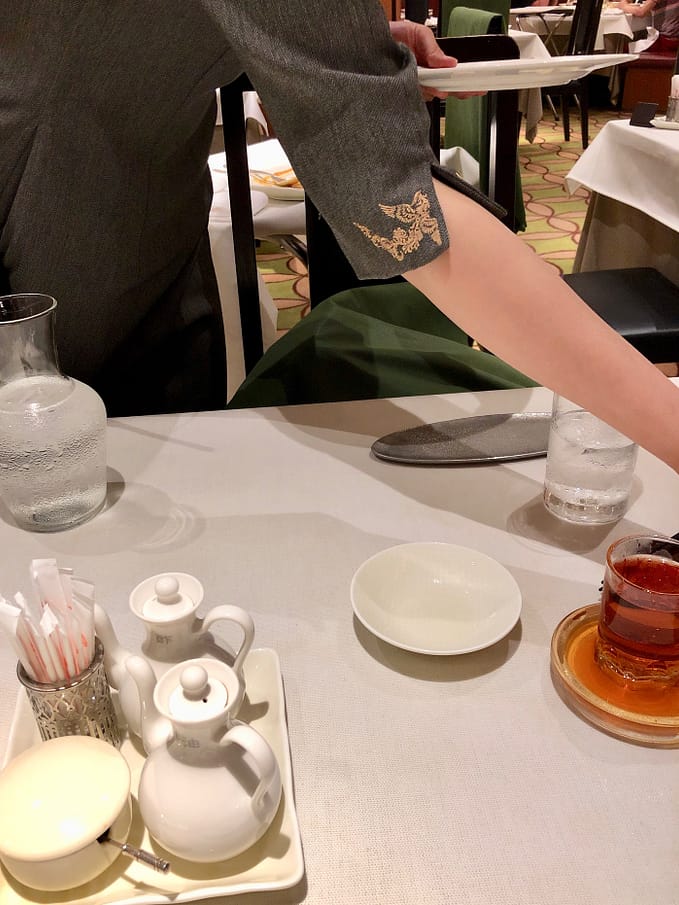 フロントで受付して、テーブル席の準備ができるまでの間、一階フロアーの席で待ちます。ここからして、ホテルのような対応に驚きました。