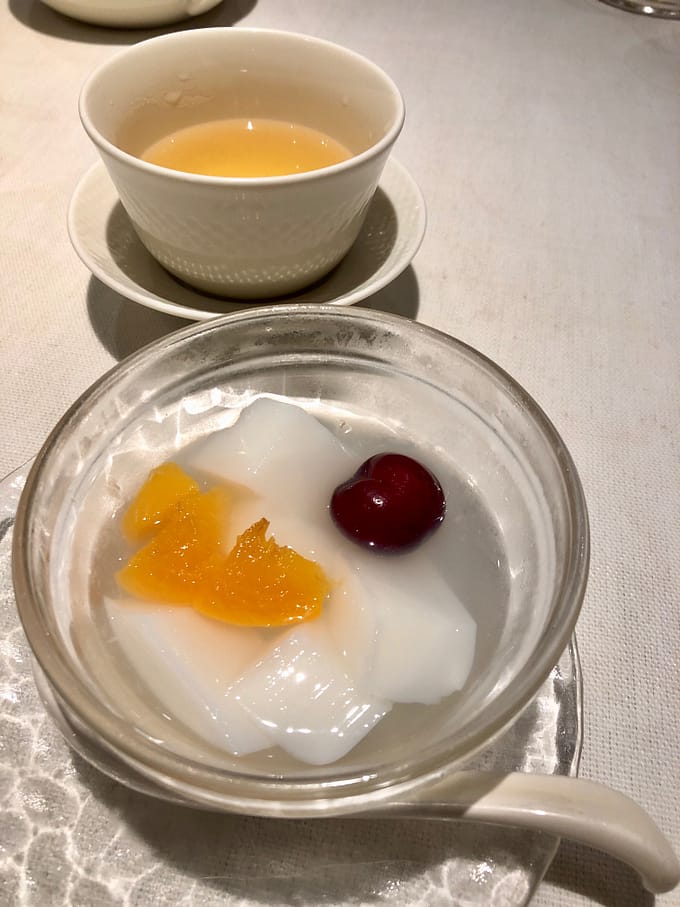 デザートの杏仁豆腐でコース料理すべて。豪華な雰囲気と美味しい料理、これで4,000円は安いと思いました。