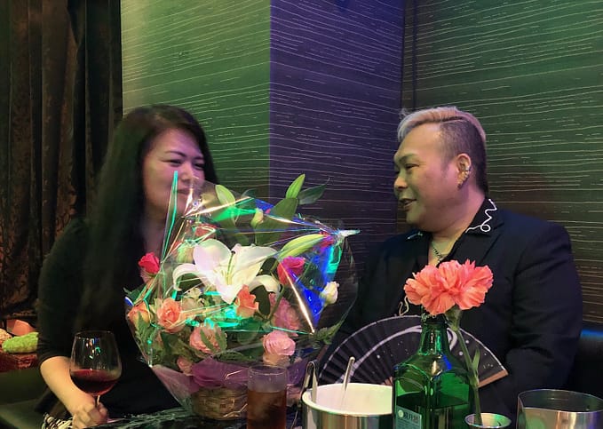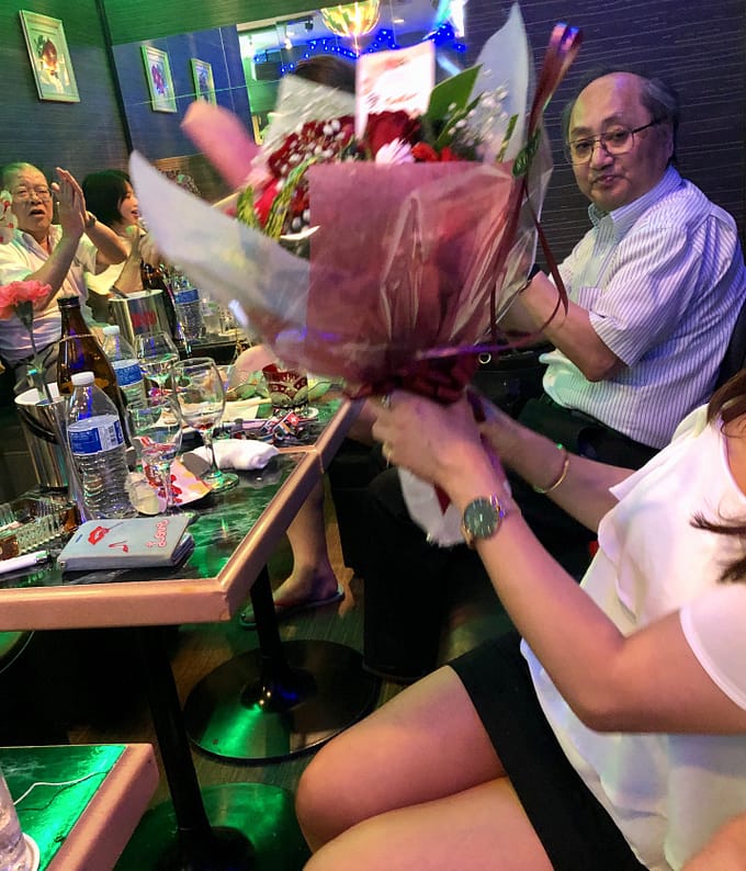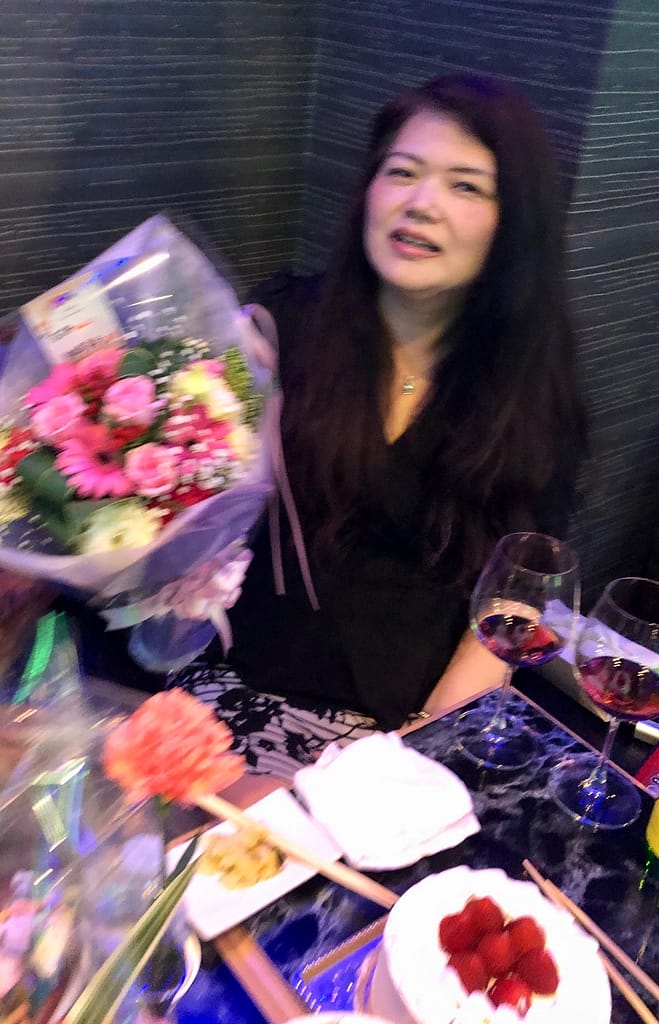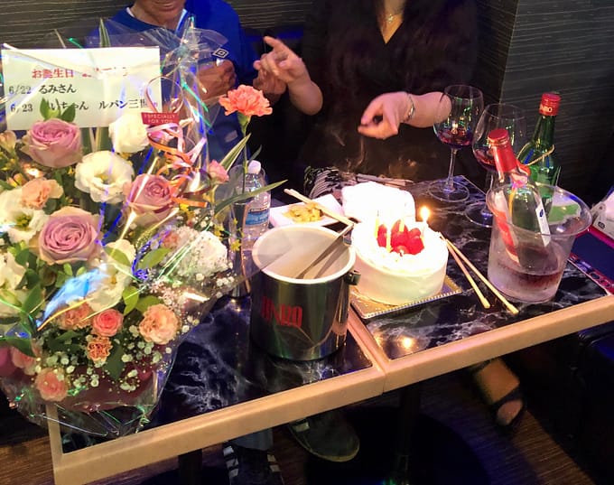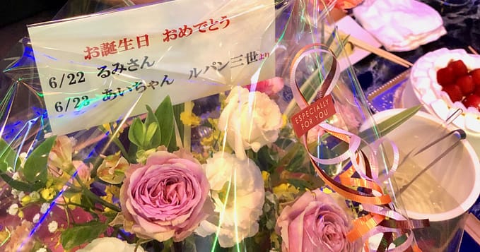 ご自分のお店を抜け出して、花束を持ってお祝いにご来店いただきました。まーくんいつもありがとうー