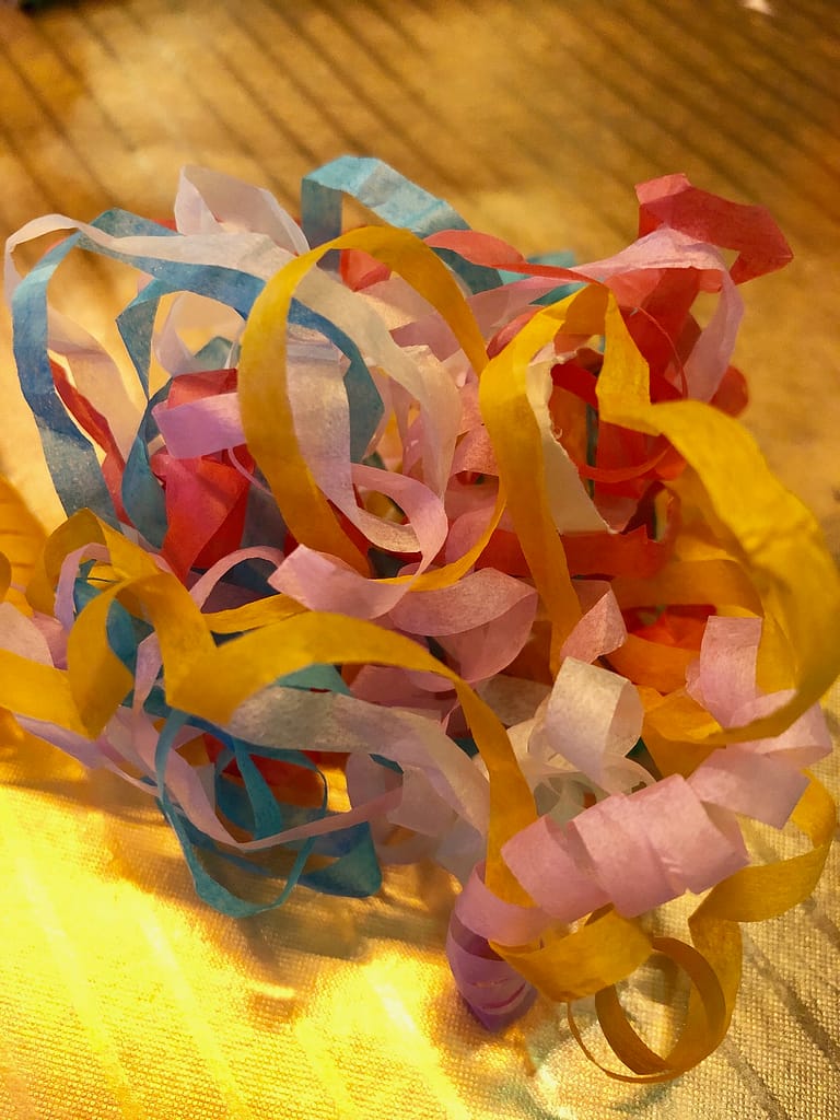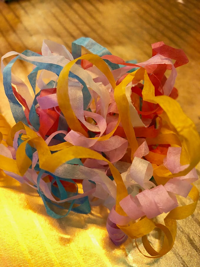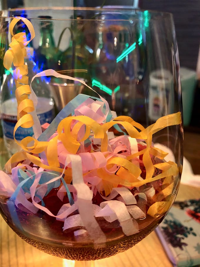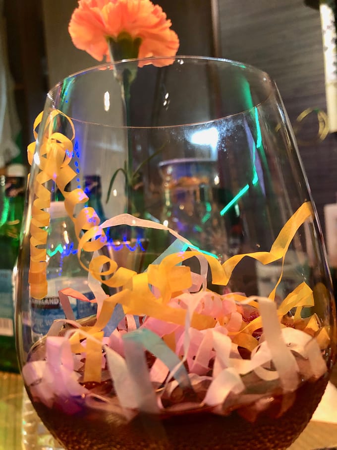 クラッカーの紙テープが愛おしくて、ワイングラスに入れてみました。普通しないよね?普通じゃないことしてみた。