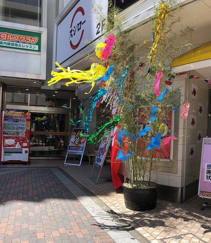 大金星でランチしてからの帰り道、パチンコ屋さんの七夕も強風に吹かれていました。