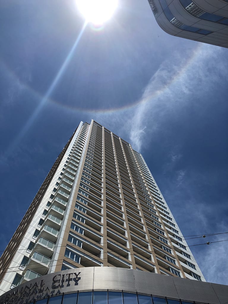 JR本八幡駅北口の交差点から見上げた空