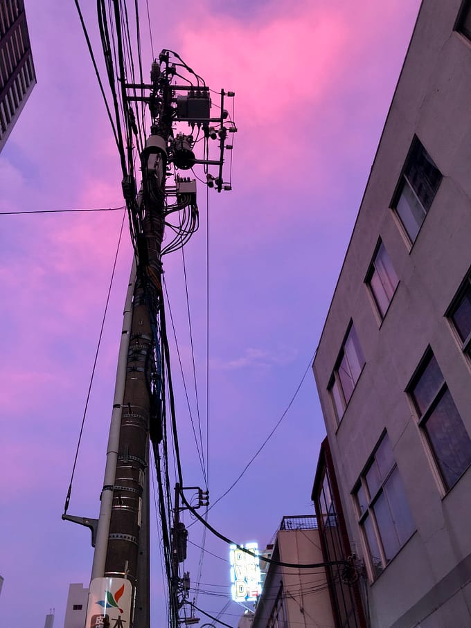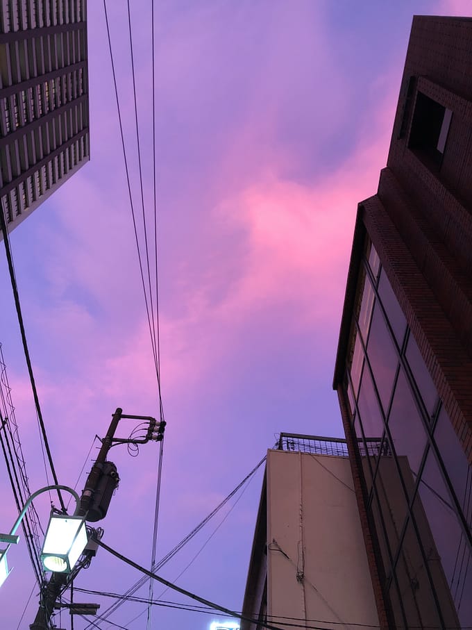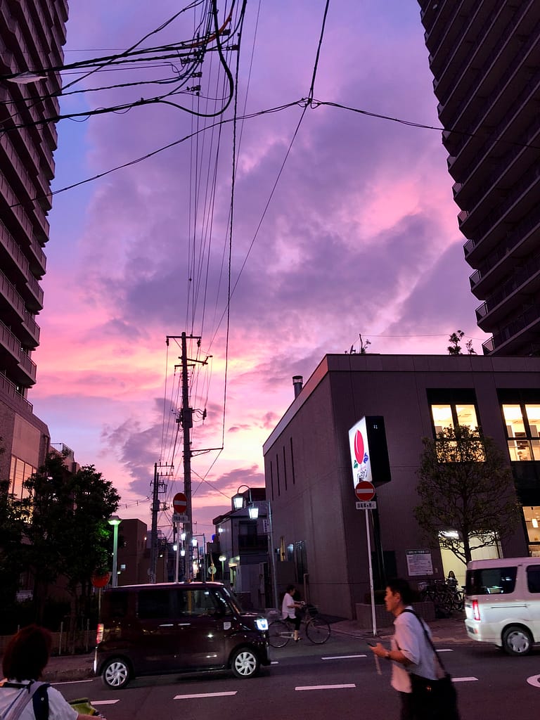 ピンク色に紫色、夕焼けがきれいすぎます。