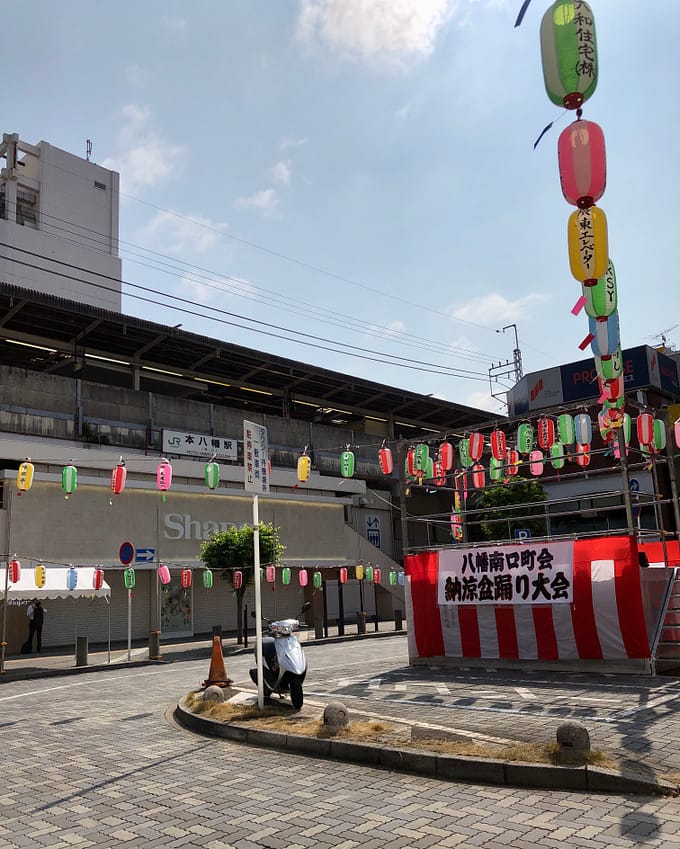 夕方から、会場はたくさんの人と、太鼓の音にあわせ踊る人、東京音頭も聴こえるかなー
