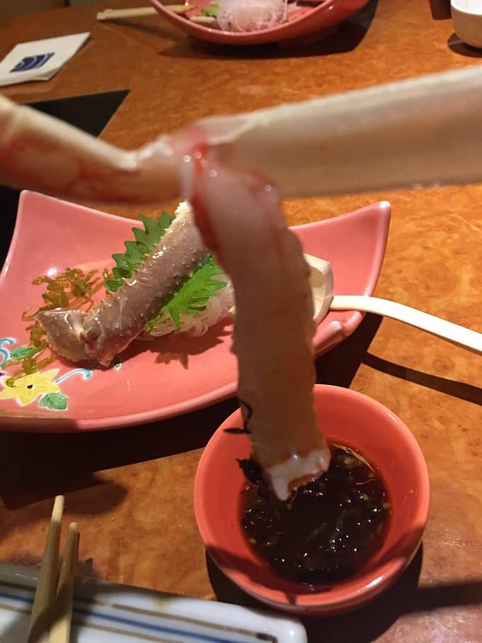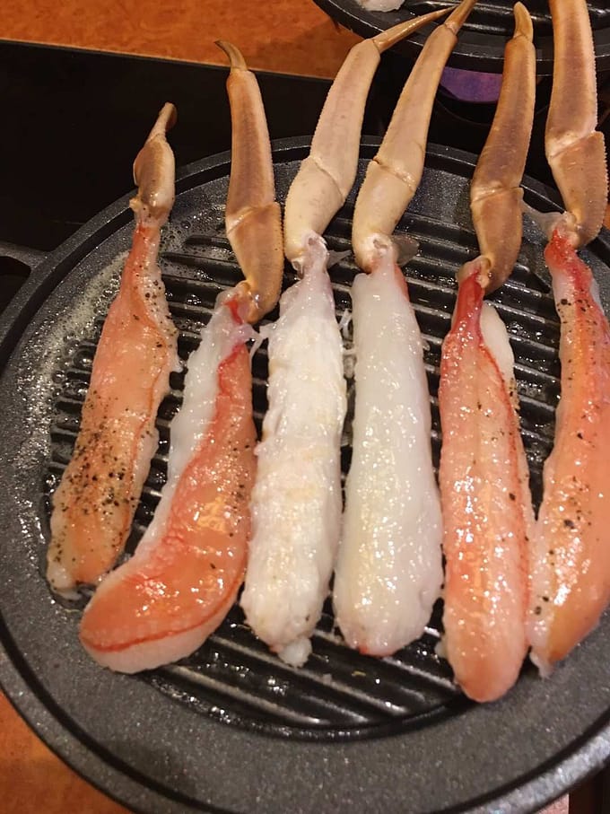 ズワイかに炭火焼き、焼くと甘味がさらに増すのと、かにの風味がなんともいえません。最高に美味しかったよ