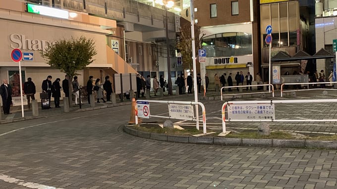 昨夜お帰りなった、お客様から来た写真です。1時過ぎの本八幡南口のタクシー乗り場は長蛇の列。いつまで待てばタクシーに乗れるんだ!のメールでした。(≧∇≦)