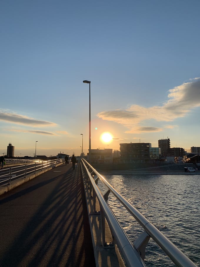 上一色中橋(かみいっしきなかはし)から見えた夕焼け、なつかしい気持ちで眺めました。