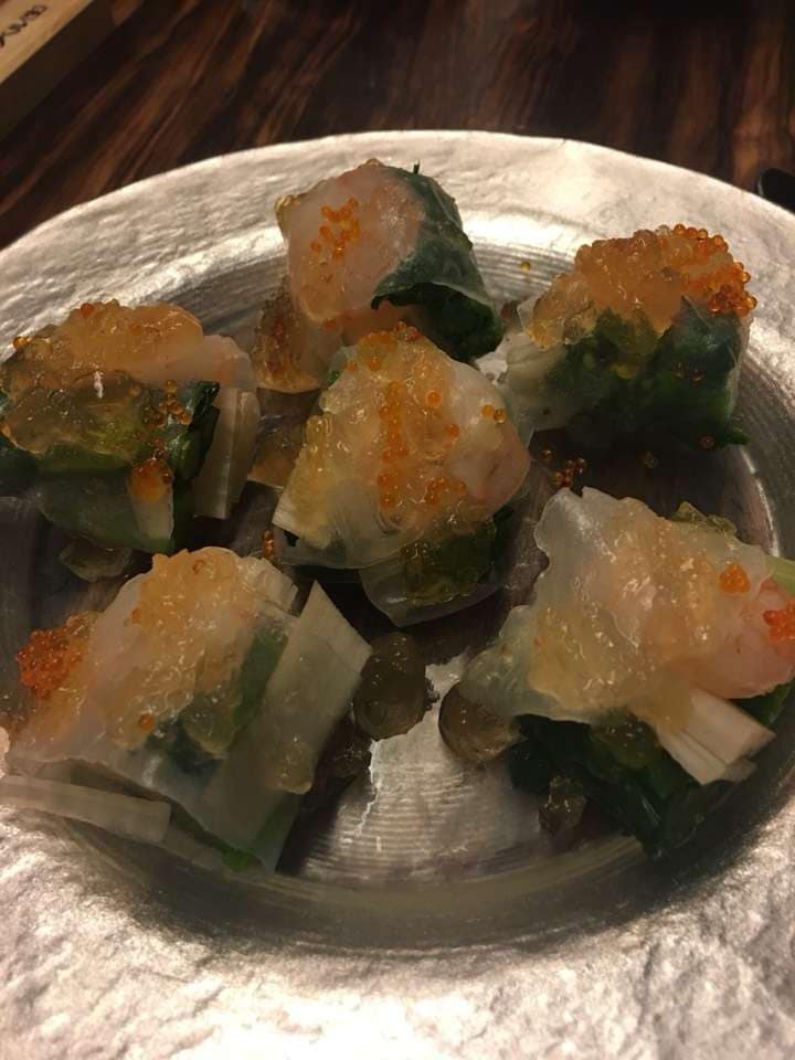 ネクタイに白衣、料理する人の真剣な表情を感じながらいただく、旬のお料理、器もステキ!