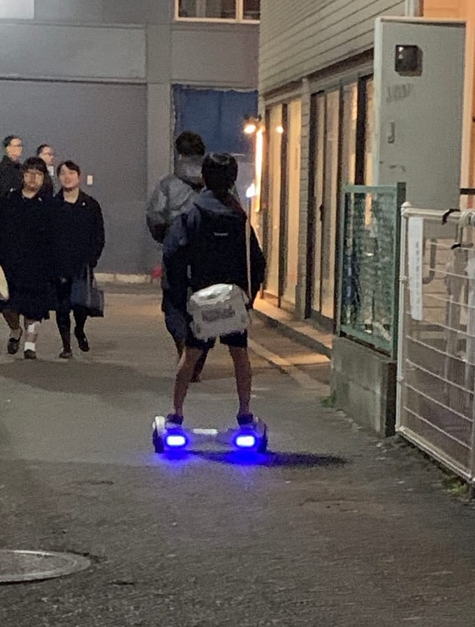 小学生くらいの男の子が、未来の乗り物でさぁーっと、私の横を通り過ぎていきました。