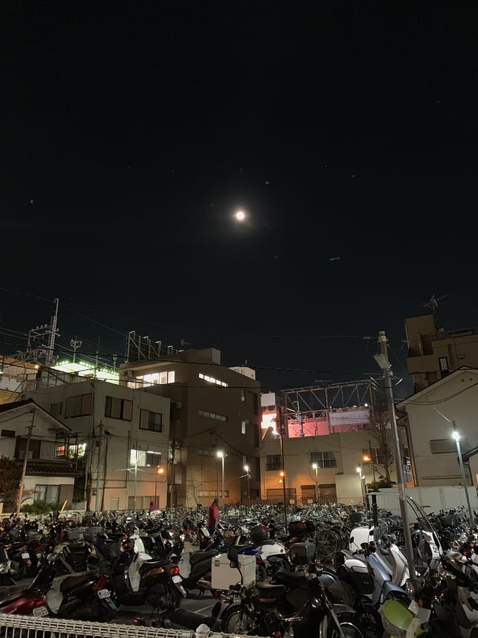 本八幡南口の駐輪場前、お月さまを見ながら歩いていると…