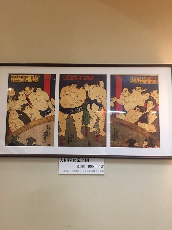 力強く描かれている大相撲の絵。真剣な表情のお相撲さんですが、どのお相撲さんも同じ顔に見えてしまいます。