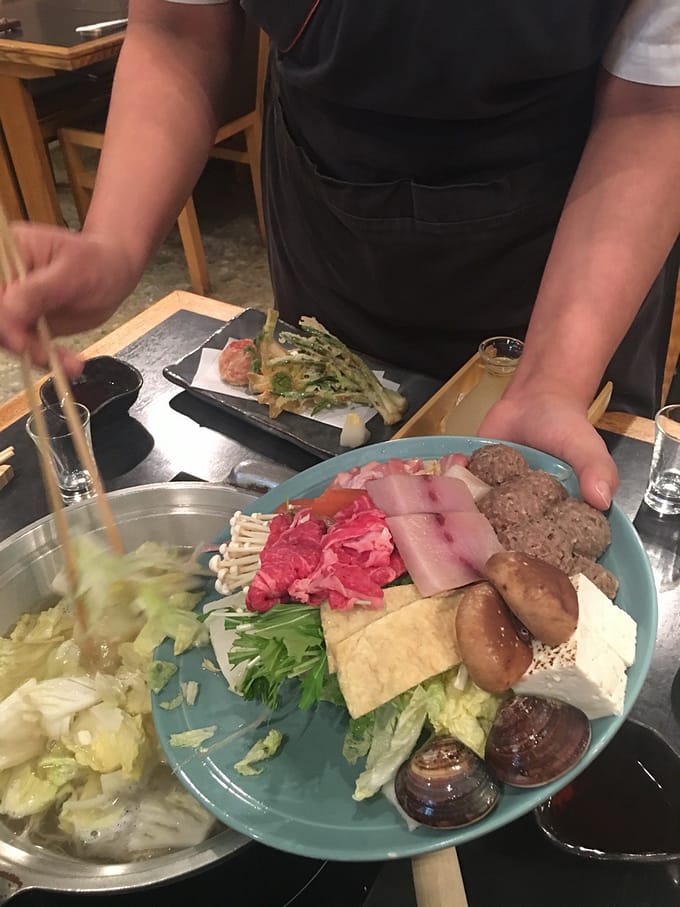 目の前で店員さんが説明しながら、鍋に具材を入れてくれます。