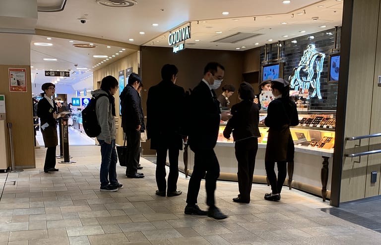 昨日のゴディバ(GODIVA) シャポー本八幡店。やっぱりホワイトデー、男性の方だけ…